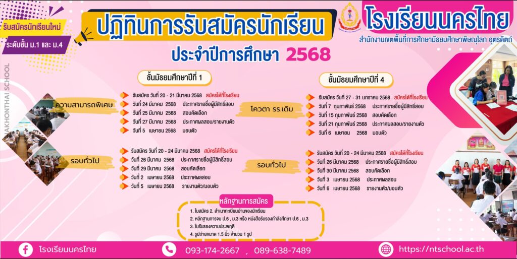 รายละเอียดการรับสมัครนักเรียน จากงานรับนักเรียนโรงเรียนนครไทย : คลิกที่นี่