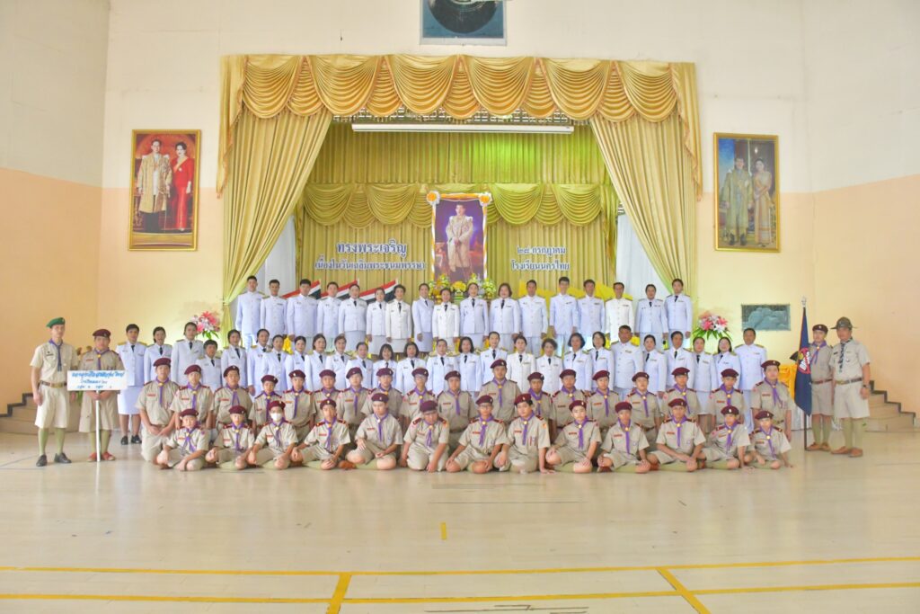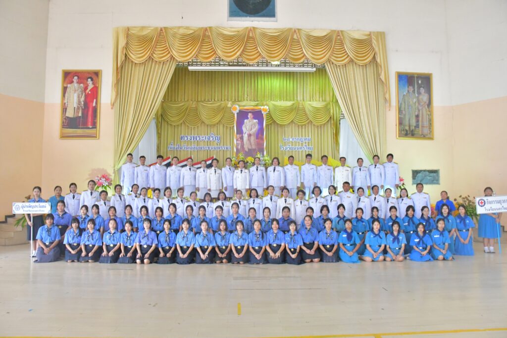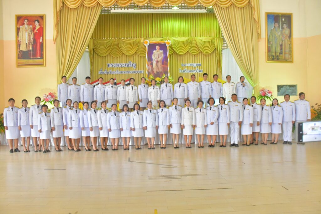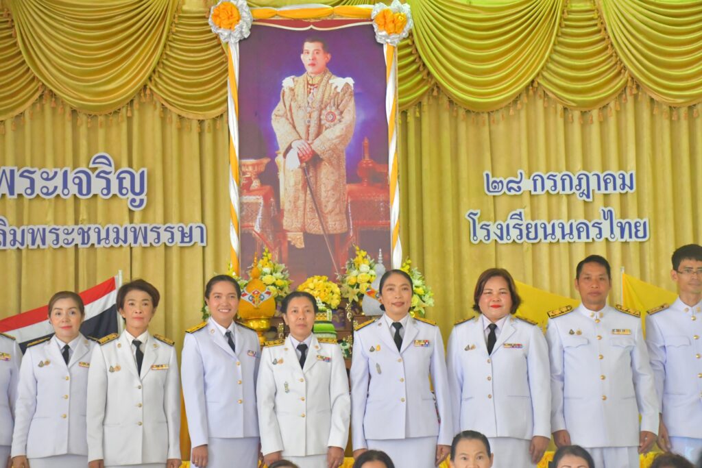 วันศุกร์ที่ 26 กรกฎาคม 2567 เวลา 09.30 น. นางพิมพ์นารา ผู้อำนวยการโรงเรียนนครไทย พร้อมด้วยรองผู้อำนวยการ คณะผู้บริหาร ข้าราชการครู บุคลากร และนักเรียนโรงเรียนนครไทย เข้าร่วมพิธีถวายพระพรชัยมงคลเนื่องในโอกาสวันเฉลิมพระชนมพรรษา พระบาทสมเด็จพระปรเมนทรรามาธิบดีศรีสินทรมหาวชิราลงกรณ พระวชิรเกล้าเจ้าอยู่หัว 28 กรกฎาคม 2567 โดยมีพิธีวางพานพุ่ม และลงนามถวายพระพร เพื่อเทิดพระเกียรติ และถวายความจงรักภักดีต่อสถาบันพระมหากษัตริย์ ณ หอประชุมพ่อขุนบางกลางท่าว โรงเรียนครไทย