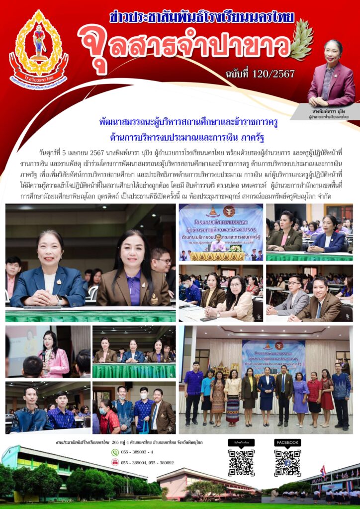 วันศุกร์ที่ 5 เมษายน 2567 นางพิมพ์นารา นุปิง ผู้อำนวยการโรงเรียนนครไทย พร้อมด้วยรองผู้อำนวยการ และครูผู้ปฏิบัติหน้าที่งานการเงิน และงานพัสดุ